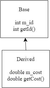 };W tym przykładzie klasa Derived wywodzi się z klasy Base.